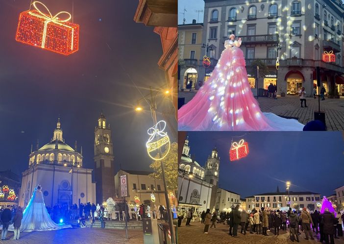 Così "BA è Natale" - dopo la presentazione con le autorità guidate dal sindaco Emanuele Antonelli e i negozianti a partire dal presidente di Confcommercio Rudy Collini e dal presidente del Comitato commercianti centro cittadino Sarah Leoni - oggi ha messo in scena uno spettacolo suggestivo in piazza Santa Maria, tra via Cavallotti e via Bramante: una scenografica dama con la sua grande gonna illuminata, che ha suonato il violino dal vivo, da oltre 4 metri d'altezza. Note e colori hanno così gentilmente travolto la piazza il santuario e gli edifici. Tutto questo nel giorno dedicato a Santa Lucia. È stata l'occasione anche per presentare con Paglini Store la nuova Renault 5, 100% elettrica.
