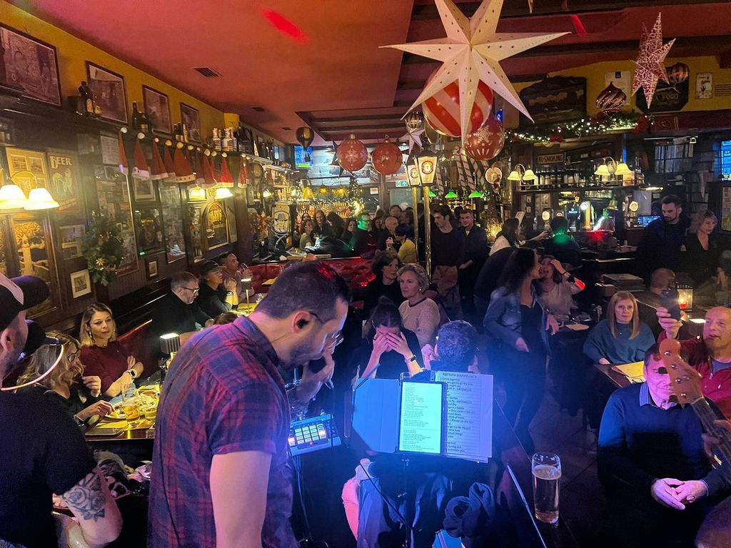 A sostenere il gioco del Maestro è suo cugino William Moretti, frontman del collettivo, un animale da palco immerso in un mix di suoni e luci che ne amplifica l’adrenalina. La nota pungente di questo collettivo che sprona e incita il pubblico all’azione. Gli avventori applaudono, battono le mani sui tavoli a tempo di musica, cominciano a far dondolare il corpo, segno che ormai non manca molto a lasciarsi andare, abbandonarsi a quell’energia pura che fa scaricare la pesantezza della settimana per togliere i freni inibitori del weekend. A quel punto interviene Emanuele Volpi “lo sbarbatello” del gruppo che però sa il fatto suo e che davanti a sé sta tracciando una strada maestra nel mondo della musica con la sua elettrica. Come il peperoncino nella mostarda, scalda gli amplificatori con i suoi riff taglienti e assoli febbricitanti rendendo incandescente il Donegal.