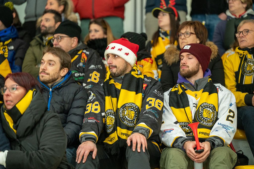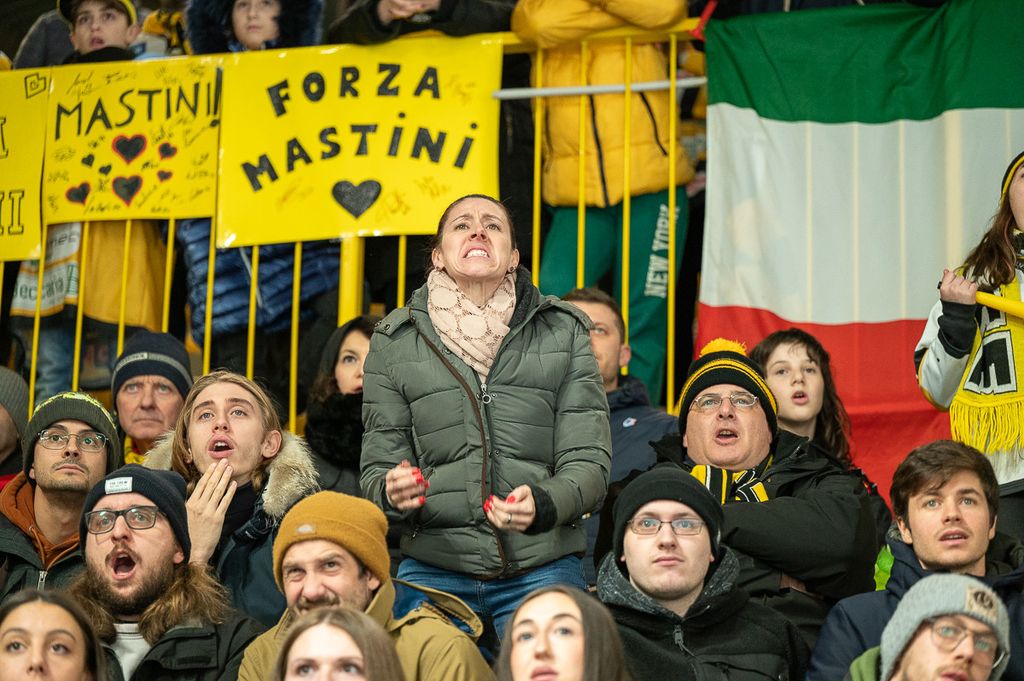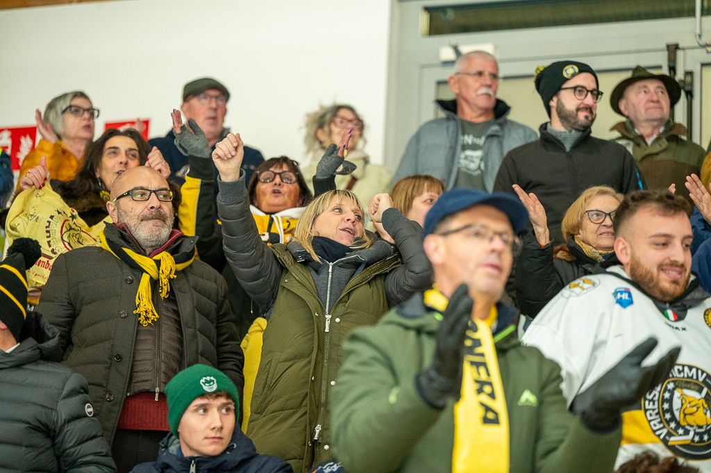 La sconfitta con l'Aosta (leggi QUI), a cui ha assistito anche il grande Maurizio Mansi, viene così superata da un atto di fede e passione incondizionato e dagli applausi finali dei mille spettatori presenti, che hanno lasciato in pista il loro cuore per i Mastini. Questi mille cuori dovranno bastare per ricaricare le pile in vista della durissima trasferta di sabato ad Alleghe.
