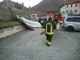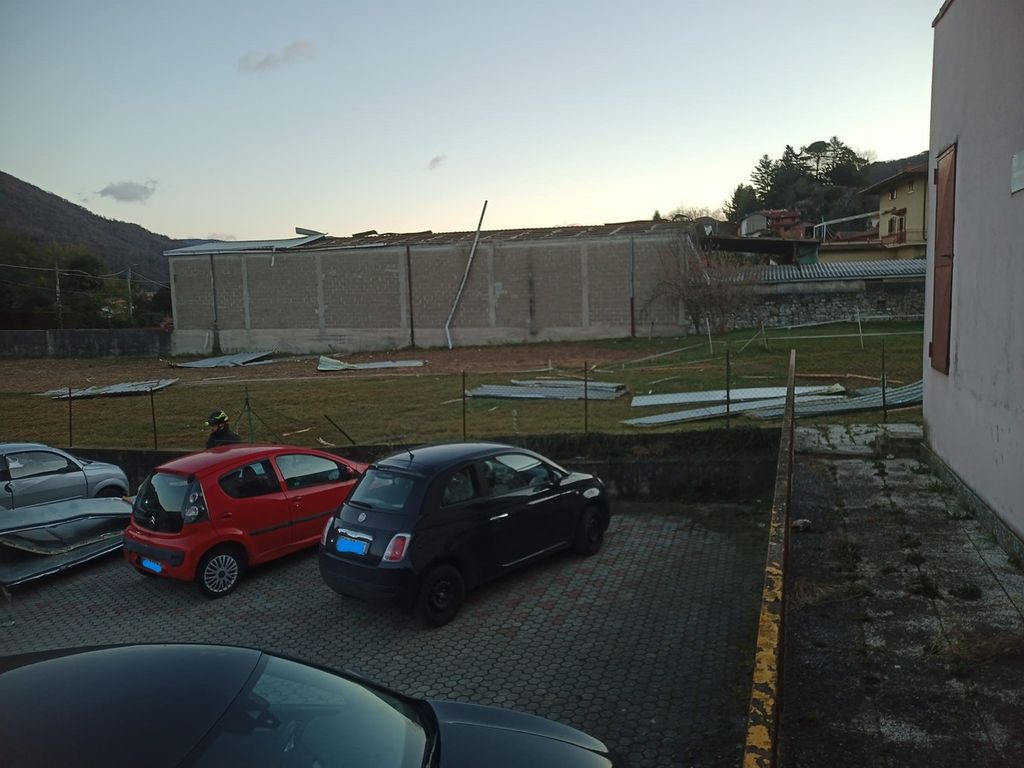 FOTO. Tetto in lamiera di un piccolo capannone divelto dal vento a Cuvio: danneggiata un'auto parcheggiata
