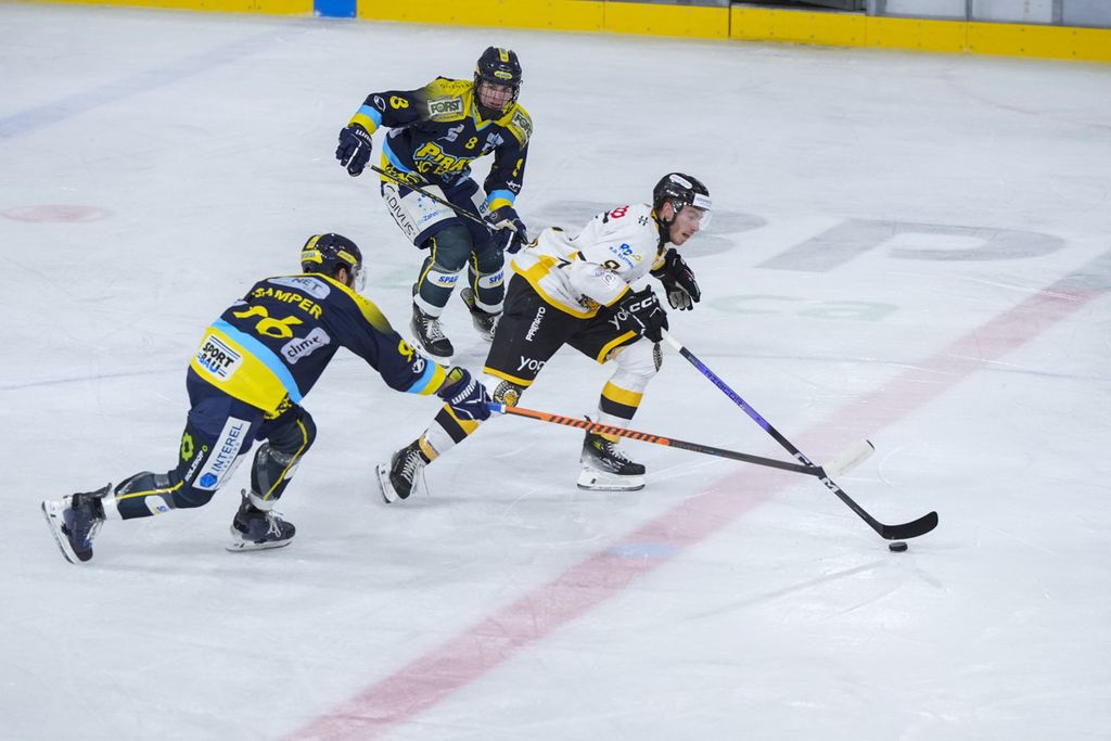 Primo tempo già deciso da una grande azione dell'Appiano, preso forse sotto gamba e, invece, è una squadra che pur rimaneggiata conserva le sue doti agonistiche e tecniche e la sua capacità di giocare bene il disco grazie a un coach come Lacroix che è anche un maestro di hockey: Eruzione buca con un tiro rasoghiaccio al volo Matonti sullo splendido assist messo in mezzo da Graf per lo 0-1. Che il Varese sia un po' macchinoso lo si vede dalle due volte in cui arriva davanti alla gabbia con l'uomo solo (Perino e Ghiglione) ma non riesce neppure a fare il solletico: il disco gira, le gambe o la testa un po' meno.