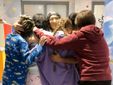 Un grande applauso l’ha accolta quando ha varcato la finestra, un po' tremolante sulle gambe ormai vecchie, ma decisa a concludere il suo lungo viaggio per donare un sorriso ai bambini ammalati. A fare gli onori di casa la dottoressa Stefania Porcu.