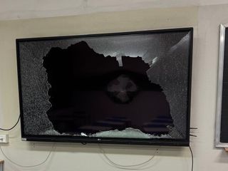 Cassetti ribaltati, porte divelte, computer e lavagna digitale distrutti. E la foto del presidente della Repubblica sfregiata.