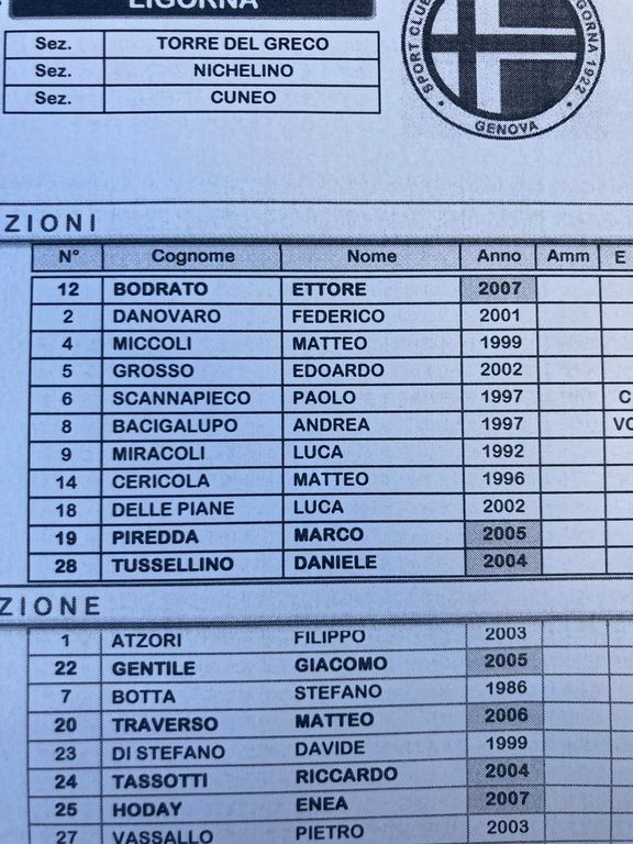 Ligorna (3-5-2): Bodrato; Dellepiane, Scannapieco, Grosso; Danovaro, Bacigalupo (38′ st Vassallo), Miccoli (21′ st Di Stefano), Piredda, Tussellino (34′ st Murgia); Cericola, Miracoli. A disp.: Atzori, Gentile, Botta, Traverso, Tassotti, Hoday. All.: Matteo Pastorino.