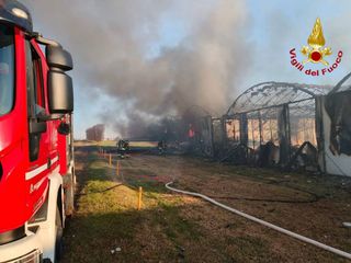 FOTO. Il devastante incendio al campo volo di Cogliate, sul posto anche i vigili del fuoco di Varese