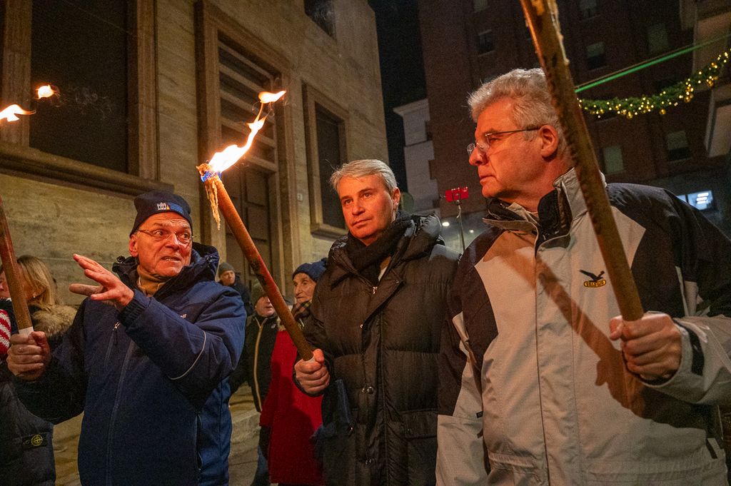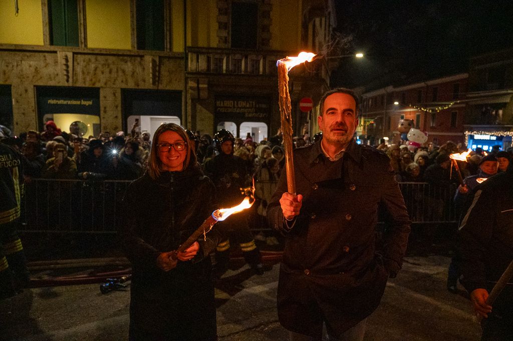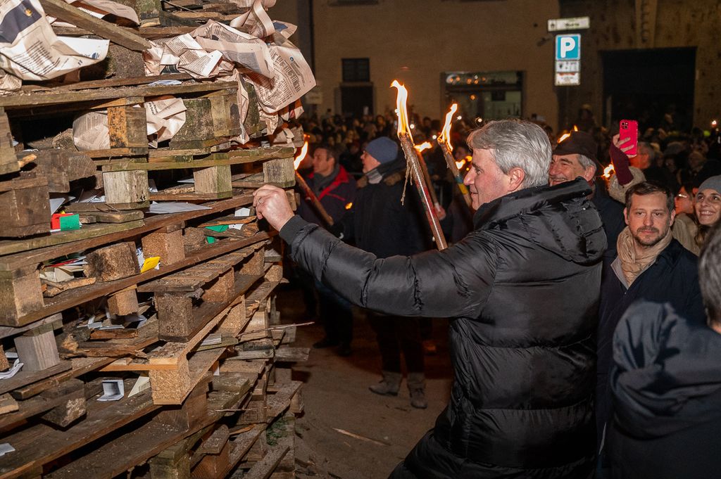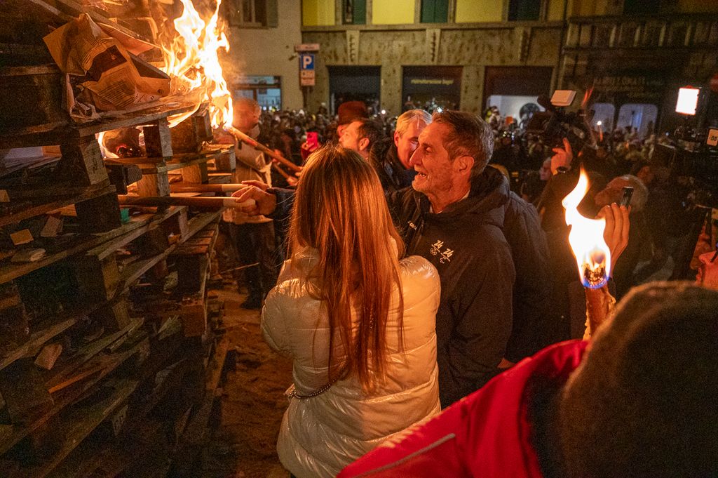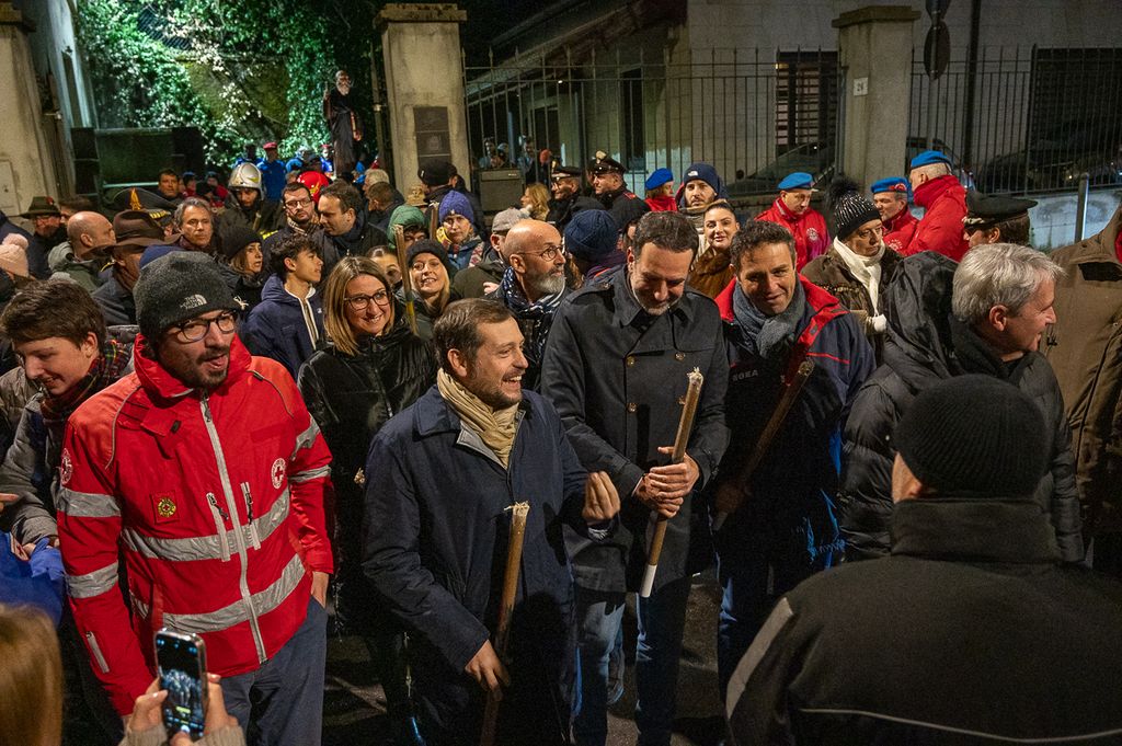 Presenti come di consueto anche numerosissime autorità istituzionali, tra cui il presidente della Regione Lombardia Attilio Fontana e il sindaco Davide Galimberti: «Una bellissima festa, che richiama le radici della nostra città E’ un piacere vedere qui stasera tante persone, piccoli e grandi le parole del primo cittadino - Il falò rappresenta il calore di una città, un calore che si esprime anche con la solidarietà. La risposta della città è come sempre molto chiara».