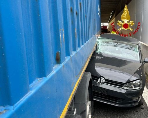 Incidente sulla 336, auto finisce tra autotreno e guard rail: ventenne ferito