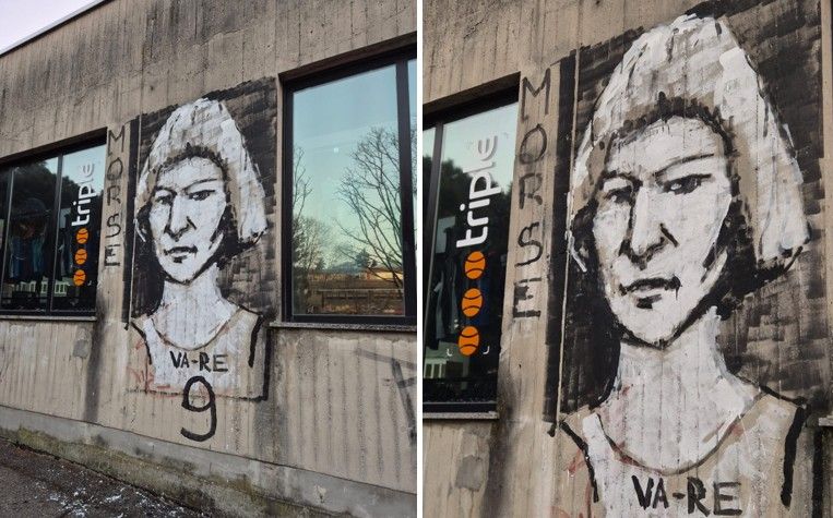 Chioma bionda e maglia numero 9, l’opera è stata realizzata nella notte da un misterioso artista di strada appassionato di pallacanestro.