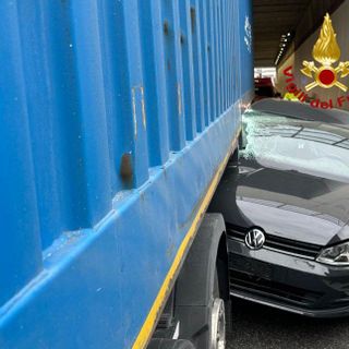 Incidente sulla 336, auto finisce tra autotreno e guard rail: ventenne ferito