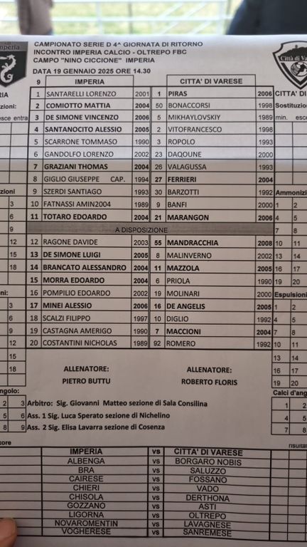 Finisce il primo tempo: 1-0 con il gol di Valagussa. Un'occasione anche per l'Imperia ma il Varese dietro per ora è solidissimo