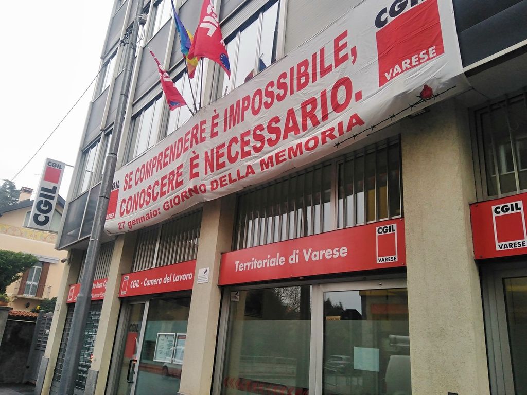 Sulla facciata della Camera del Lavoro di Varese è stato esposto uno striscione con la frase dello scrittore Primo Levi: “Se comprendere è impossibile, conoscere è necessario perché ciò che è accaduto può ritornare”. Un invito potente e attuale a riflettere e vigilare affinché l’orrore del passato non si ripeta.