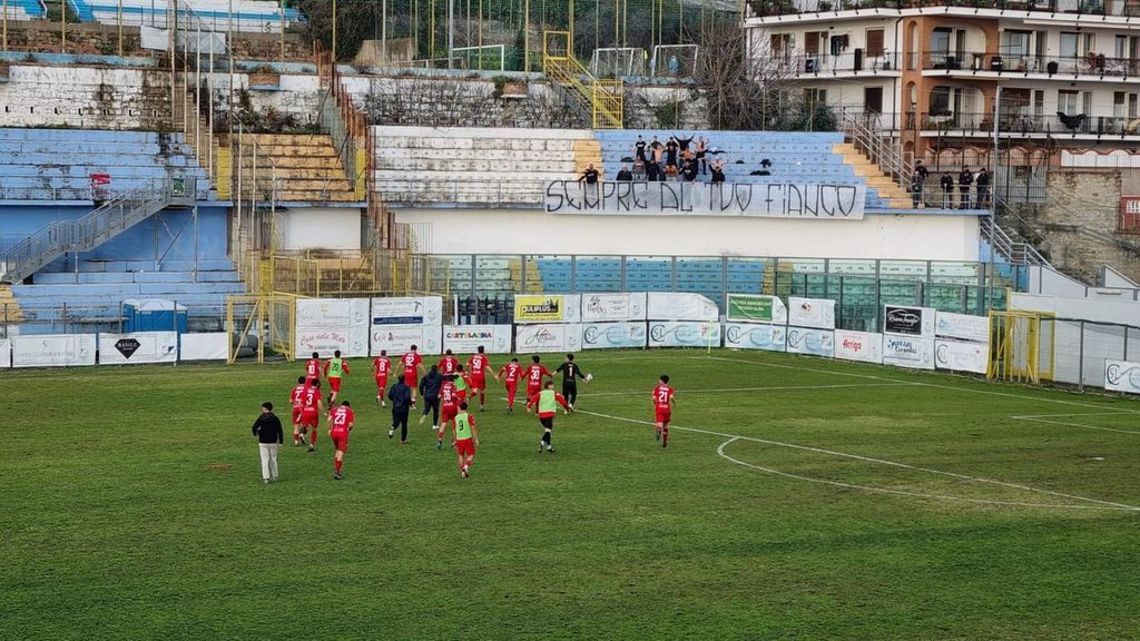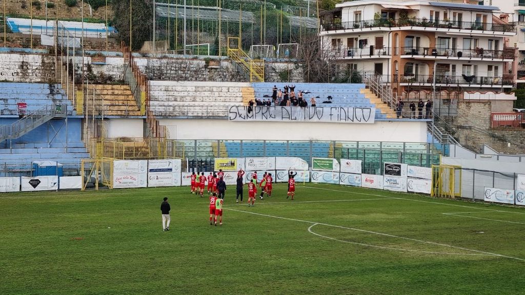 Le parole di mister Floris e Barzotti-gol dopo la vittoria di Sanremo lasciano il segno. Lo striscione della curva ("Sempre al tuo fianco") è davvero meritato
