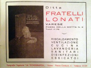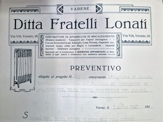 L’azienda rimase nella prima sede fino al 1935, ma dal 1930 si stava costruendo il palazzo di piazza Motta dove la Lonati si sarebbe trasferita. «L’impianto di riscaldamento del condominio venne costruito da mio nonno quando ancora non c’erano le pompe a spingere l’acqua. Questa saliva per i piani attraverso un ingegnoso sistema di tubi di ferro, che si assottigliavano man mano che andavano verso l’alto, un impianto che funziona ancora oggi! Tutto dipendeva dalla qualità del ferro impiegato e da particolari saldature. In magazzino ho ritrovato una vecchia stufa smontata e in pochissimo tempo l’ho rimontata, ogni vite era segnata e non ho faticato a rimettere ogni pezzo al suo posto».