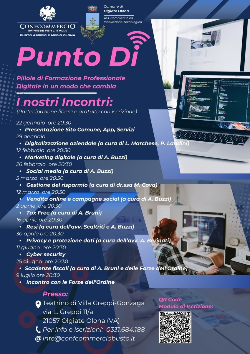 Il Comune di Olgiate Olona, in collaborazione con Confcommercio Busto Arsizio e Medio Olona, annuncia il terzo appuntamento del ciclo di incontri formativi Punto-Di, dedicato alla transizione digitale delle imprese locali (LEGGI QUI).