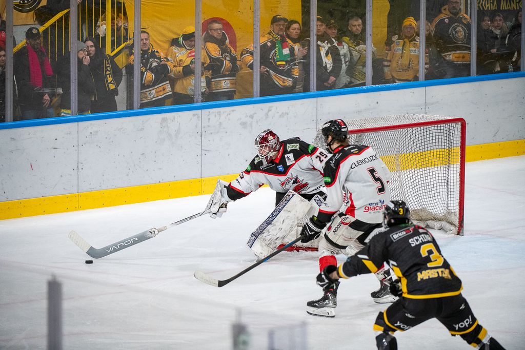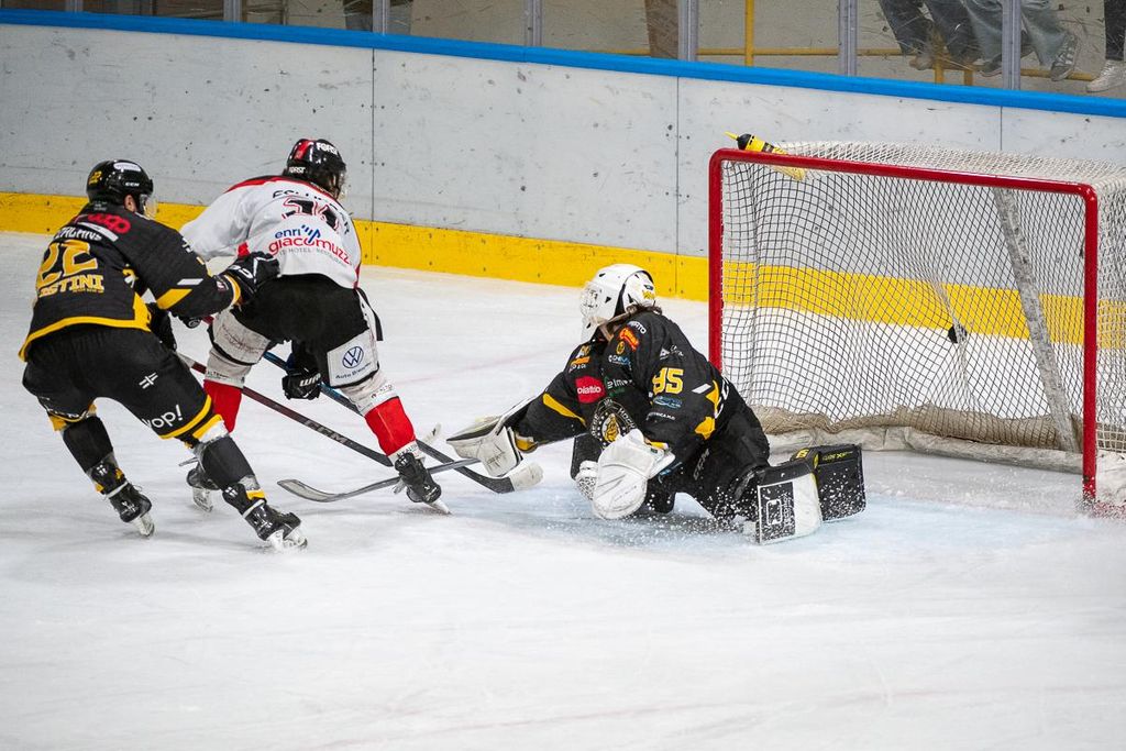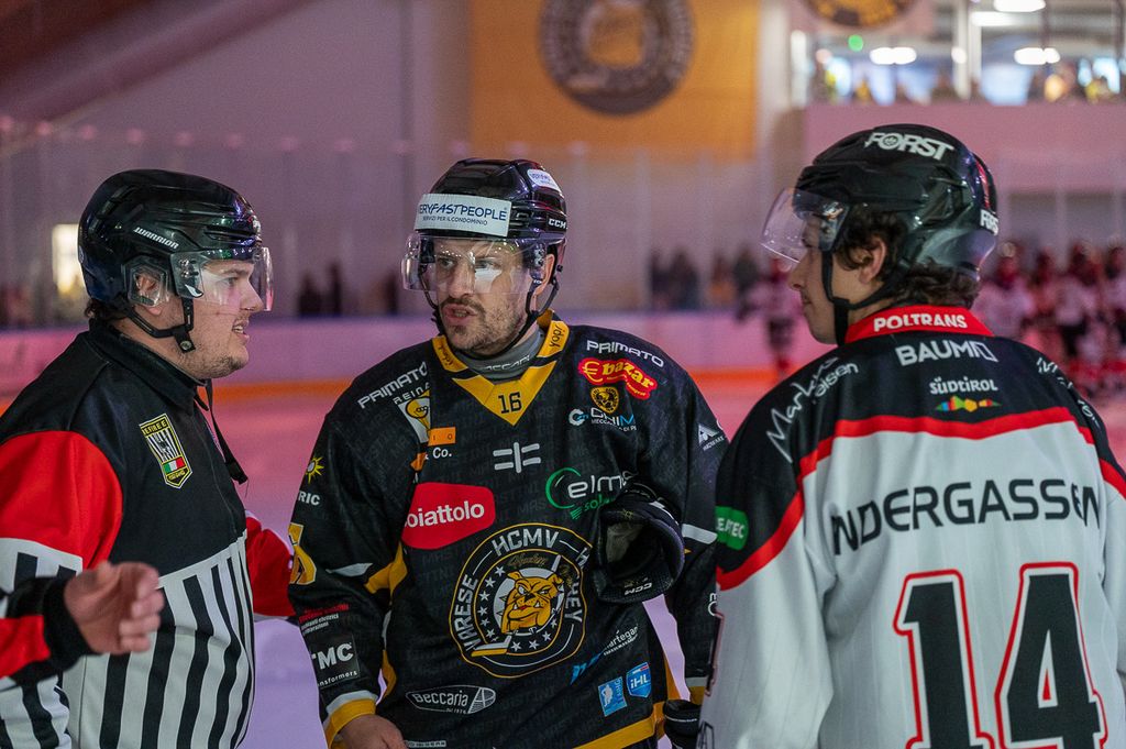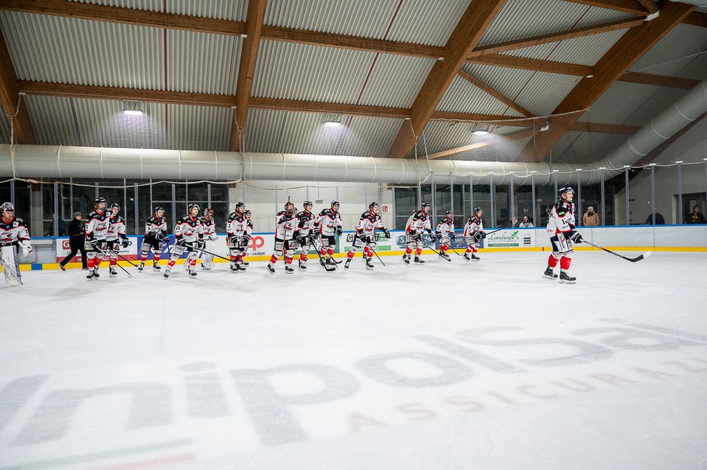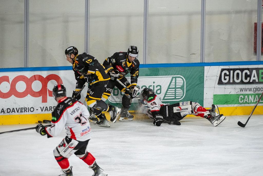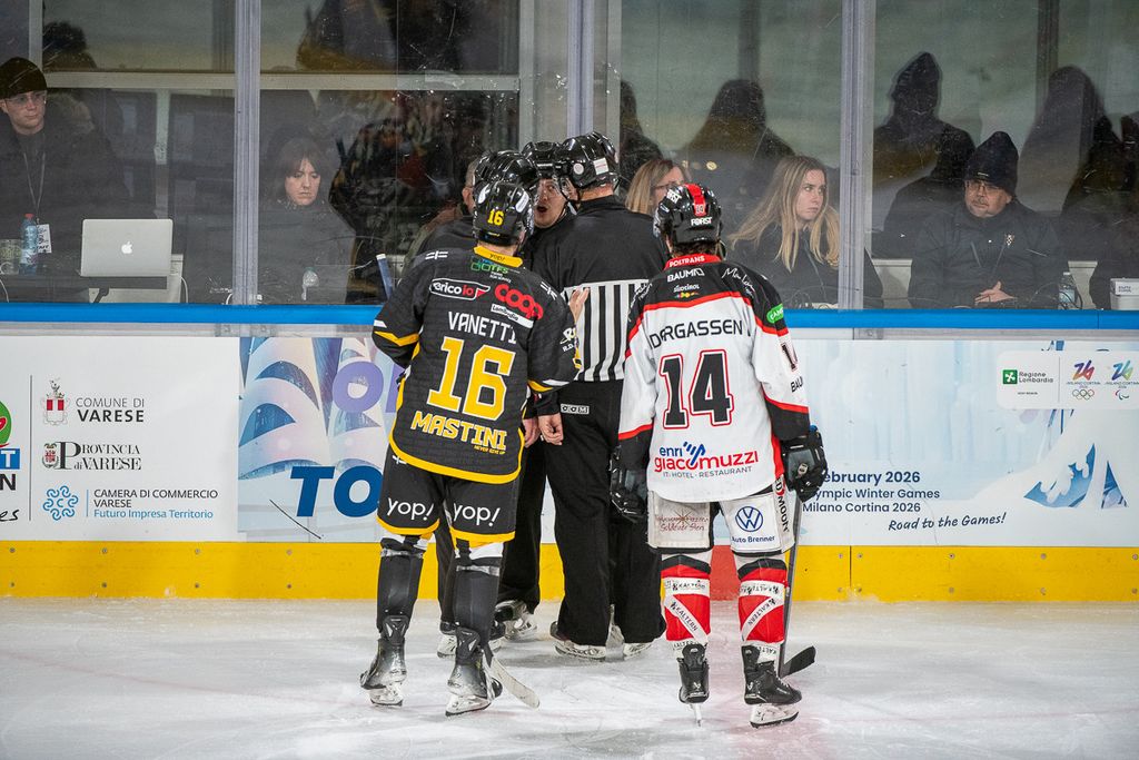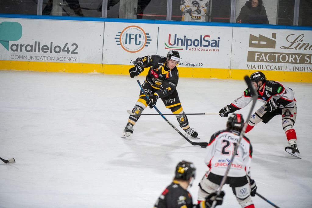 Partita in cassaforte già nel primo drittel, finito 3-0 con i gol di Moritz, De Dona' e Oberrauch. Disastro addirittura peggiore nel secondo periodo: a segno, sempre nella stessa porta, Andergassen, Felderer (doppietta) e ancora Oberrauch. Sfamate le loro fauci, gli altoatesini concedono il gol della bandiera a Kuronen, nel terzo tempo.