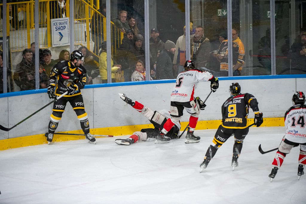 È la sconfitta peggiore dell'era riconducibile al presidente Carlo Bino. E anche andando indietro parecchio con la memoria non se ne trovano di simili. Per la prima volta, inoltre, ed è cosa ben peggiore, si sono sentiti anche dei fischi e dei cori di disappunto dell'Acinque Ice Arena, mai costretta prima d'ora a "godere" dello "spettacolo" di una squadra sfilacciata e svuotata.
