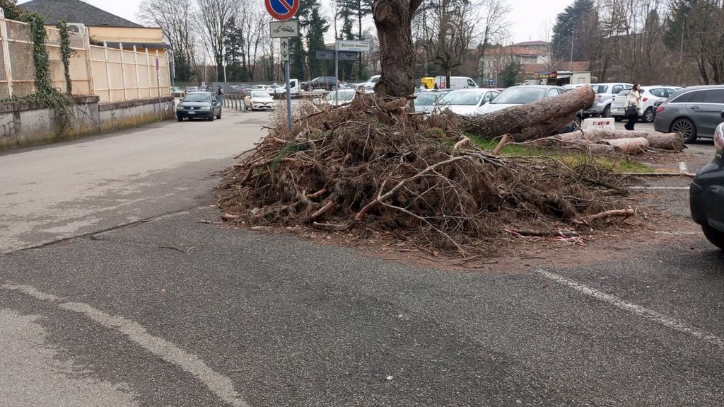 Crollata a metà luglio, la pianta aveva travolto due auto nel parcheggio di fianco all'Asl e all'Università dell'Insubria, mettendo in pericolo due persone. Tempestivamente erano intervenuti i soccorsi e l'albero era stato diviso in diverse parti.