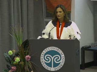 È stata poi l’ora del discorso della magnifica rettrice Maria Pierro, alla sua prima cerimonia d’inaugurazione in questa veste: «L’ateneo deve la sua costituzione al coraggio di coloro che hanno superato lo scetticismo di alcuni. Hanno intuito che l’ateneo avrebbe contribuito alla crescita culturale sul territorio, mobilitato le nuove generazioni e favorito gli investimenti e la competitività delle imprese. Siamo determinati all’impegno di realizzare nuove infrastrutture edilizie e a completamento di quelle esistenti. In questi anni molto è stato fatto per la formazione, per la ricerca e per la trasmissione alla conoscenza della società civile. Continueremo con l’internazionalizzazione della nostra offerta formativa».