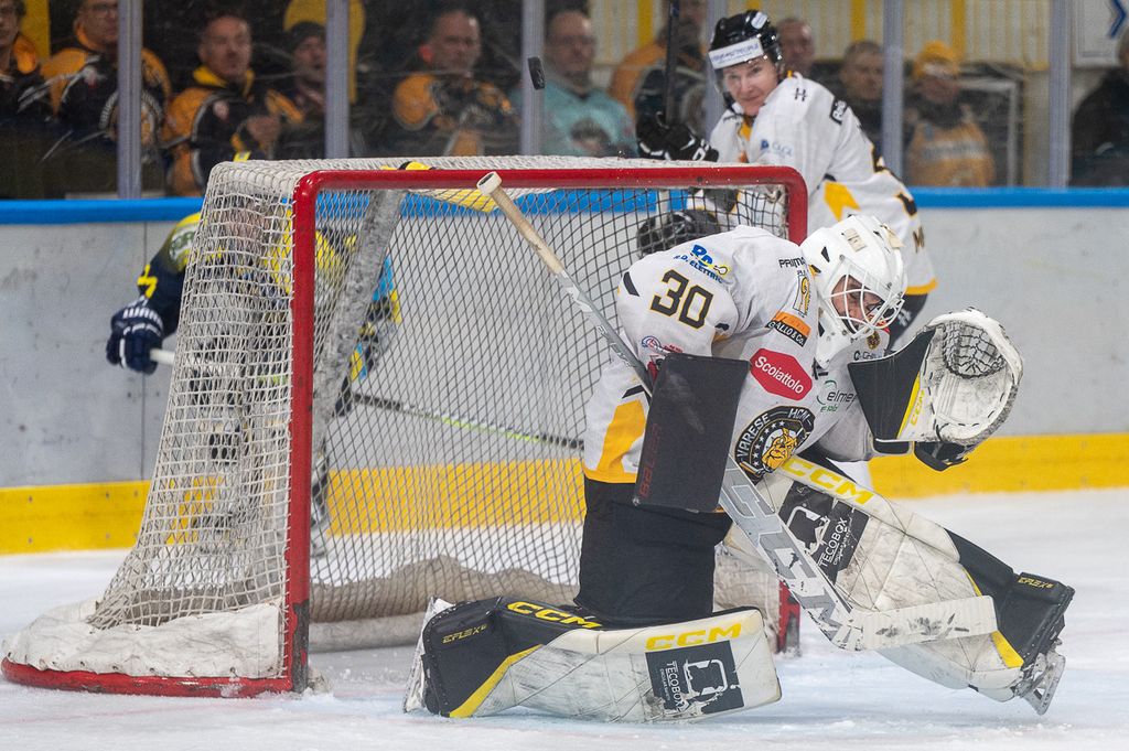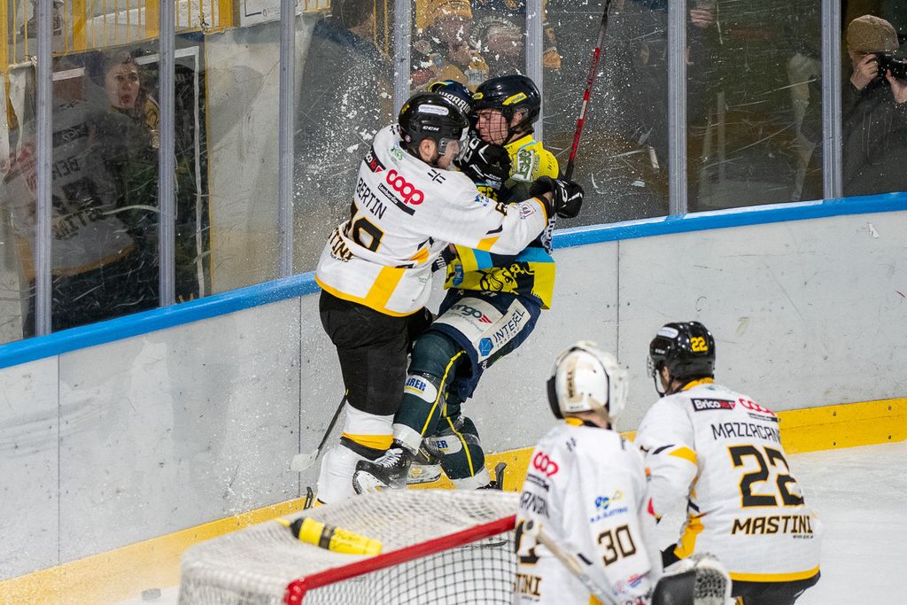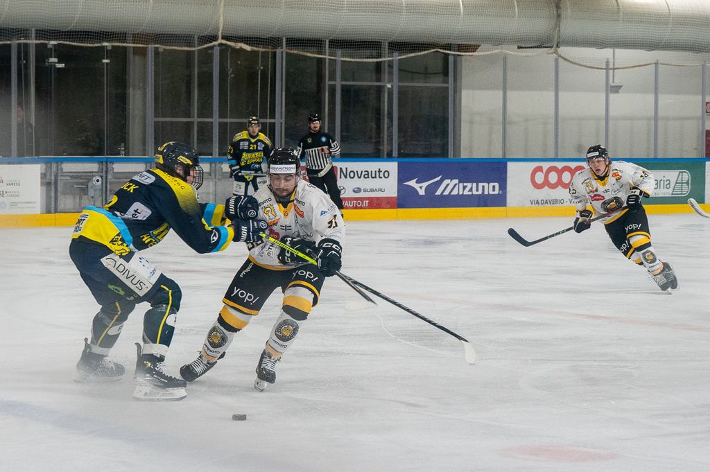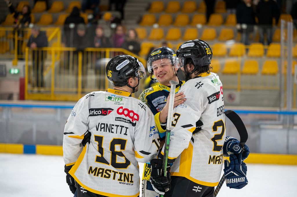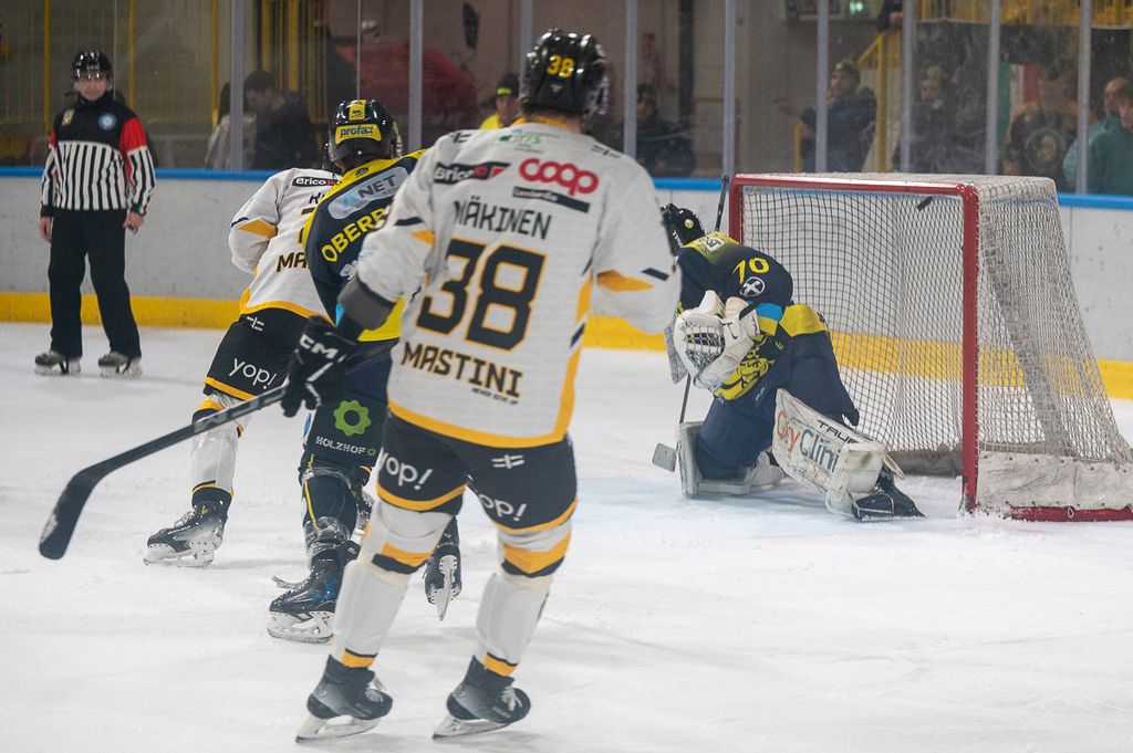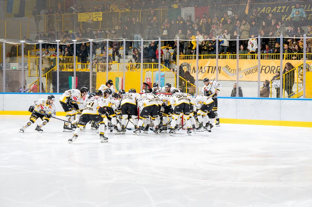 Noi, stasera, ci accontentiamo innanzitutto delle 400 partite in giallonero del recordman Erik Mazzacane, e del pubblico, quasi 800 persone vicine alla squadra nei momenti più duri, capace di spronare (vedi lo striscione dei Ragazzi della Nord: "7-1: meritiamo rispetto, riprendiamoci lo scudetto") e difendere questa piccola sporca vittoria. E ci accontentiamo della mole di gioco non sfruttata dei primi due periodi, del ritorno in cattedra di un portiere nel Varese, del tentativo intravisto sulla panchina giallonera di un maggior dialogo tra tutti che riportano alla fine i Mastini all'unica cosa che oggi serviva: vincere. Vincere e vivere. Il resto, forse verrà. O scomparirà, come le troppe penalità (4 solo per Marco Matonti, autore comunque di un gol raro e purificatore per il provvisorio 3-2) che hanno fiaccato la resistenza giallonera nel terzo periodo fino allo scontato epilogo del 3-3 incassato su un tiro da distanza siderale di Radin in doppia inferiorità a un minuto dalla sirena con l'Appiano senza portiere e Marcello Borghi in panca puniti. O come i troppi gol falliti nei momenti "on", i buchi difensivi in quelli "off" e l'attesa per il ritorno del vero Makinen, ancora lontano da quello che proprio ad Appiano aveva fatto innamorare di lui il Varese e, forse, sopraffatto - come Kuronen - dai momenti di tensione assoluta vissuti da gruppo e ambiente nelle ultime settimane che, per due stranieri così freddi e calmi, tolgono quella freddezza e sicurezza da riconquistare con serenità, lucidità e stabilità.