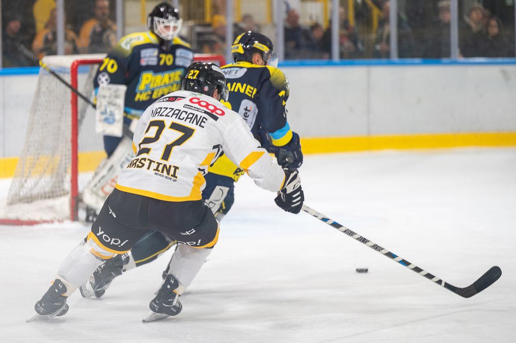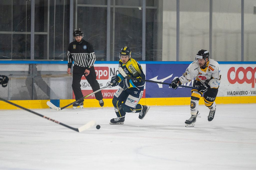 Stasera la pallina della roulette lanciata da Glavic si ferma sul numero 30 del portiere ucraino Ohandzhanian, titolare per Filippo Matonti, sul 24 di Perino, portato in prima linea al posto di Ghiglione, che è in seconda accanto a capitan Vanetti e Tilaro, mentre il 3 di Schina è in terza e il 69 di Bertin entra a rotazione come uno stantuffo. Al 55 del rientrante Piroso tocca la quarta. Rispetto all'1-7 con il Caldaro sono diverse tutte e tre le linee difensive (in prima c'erano Makinen e Marco Matonti, in seconda Schina e Crivellari, in terza Bertin ed Erik Mazzacane con Raskin di supporto all'evenienza). Cambiano dunque molte cose, ma alla fine l'insieme di tutti questi numeri compone comunque la forma voluta, cercata e poi spremuta: il cuore giallonero. Contava solo quello.