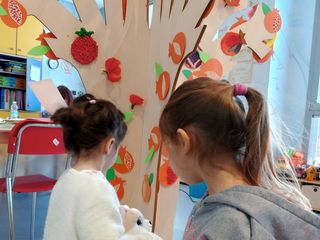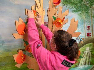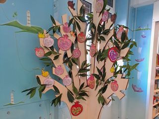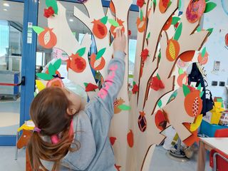 Nei giorni precedenti, i bambini ricoverati e i loro genitori sono stati coinvolti nel preparare fiori, foglie e frutti con messaggi di vicinanza a tutti i bambini del mondo che lottano per guarire. Così gli alberi di melograno spogli sono diventati rigogliosi e carichi di colori vivaci e di speranza.