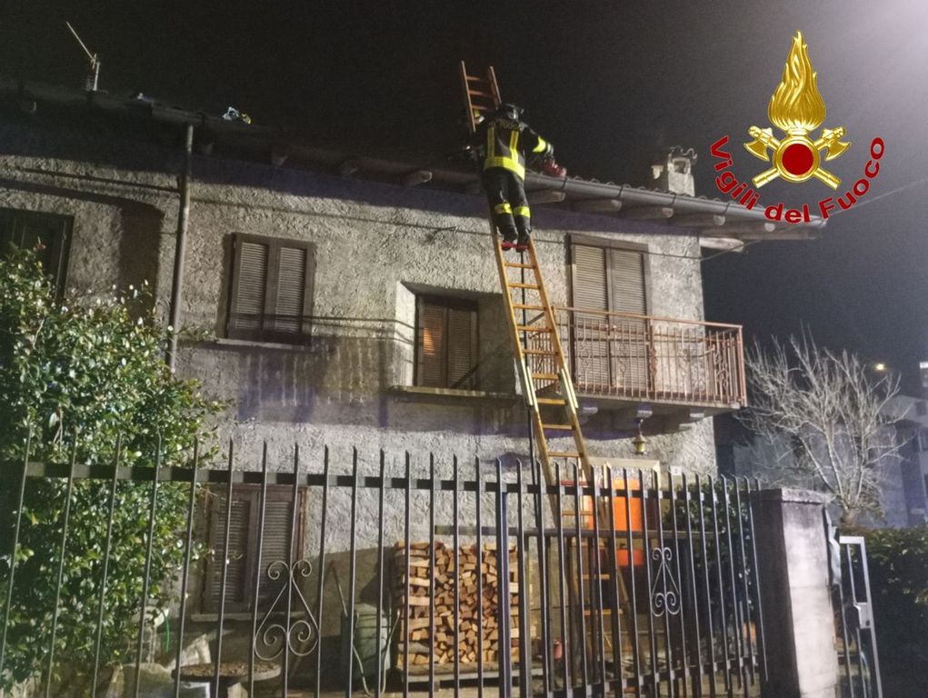 Vigili del fuoco al lavoro nella serata di domenica per un incendio che interessato una casa a Grantola. Nessun ferito