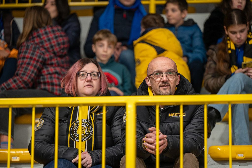 Non avevamo dubbi su come si sarebbe comportato il pubblico del Palalbani - giusto oggi chiamarlo così, evocandone lo spirito e l'anima più profondi - di fronte ai Mastini in difficoltà e vincenti dopo una maratona con l'Appiano (clicca QUI). L'urlo al rigore vincente di Franchini e quel ruggito tra rabbia e sofferenza che ha rimbalzato ogni attacco dell'Appiano, fondendosi nelle parate di Ohandzhanian, sono il simbolo di un amore verso questi colori sacro e inarrivabile, che merita solo un "grazie" senza se e senza ma. Così come lo merita Erik Mazzacane, recordman silenzioso di presenze in giallonero premiato con una maglia speciale e omaggiato sugli spalti. Il segreto dei Mastini è proprio questo, come nelle storie più belle della vita: scoprire di essere arrivati a giocare 400 partite quasi senza che nessuno se ne accorgesse, forse neppure lui. Perché l'amore, quello vero, non ha bisogno di alzare la voce o segnare valanghe di gol per prendere il sopravvento. L’amore di Erik per questa maglia non vuole avere, vuole soltanto amare.