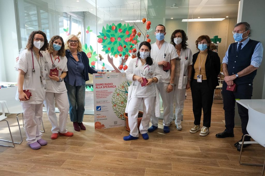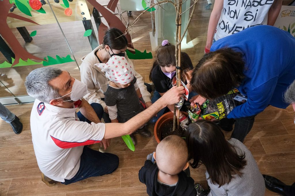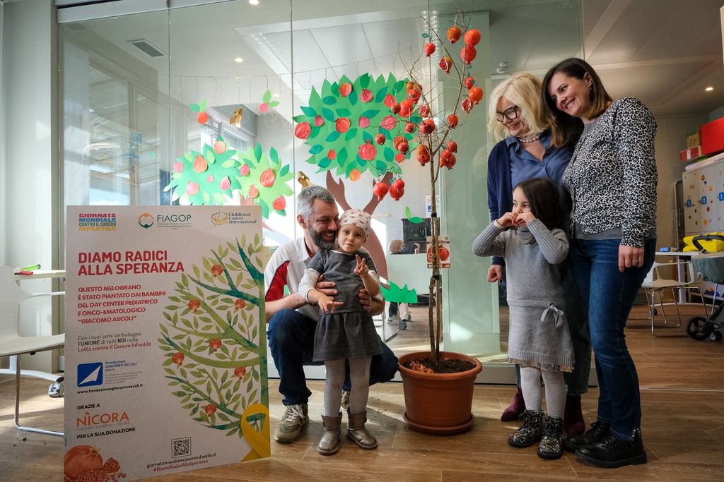La speranza dei bambini ha preso radici questa mattina nel parco di Villa Recalcati, dove è stato piantato un melograno, simbolo della Giornata mondiale contro il cancro infantile. Il frutto, composto da piccoli chicchi, rappresenta l’alleanza terapeutica tra pazienti, medici e famiglie.