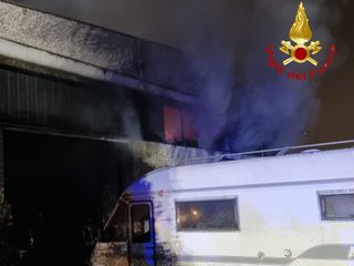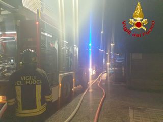 Capannone di un'azienda di materie plastiche in fiamme a Caronno Pertusella: vigili del fuoco in azione