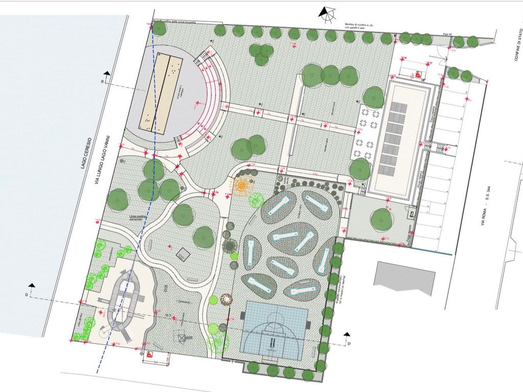 Il progetto prevede delle grandi novità, non presenti del disegno originale dei lavori: verranno realizzati delle piste da minigolf, un piccolo campo da basket, un anfiteatro per gli eventi per bambini e due campi da bocce nell’area un tempo occupata dalla piscina, ora non più agibile.