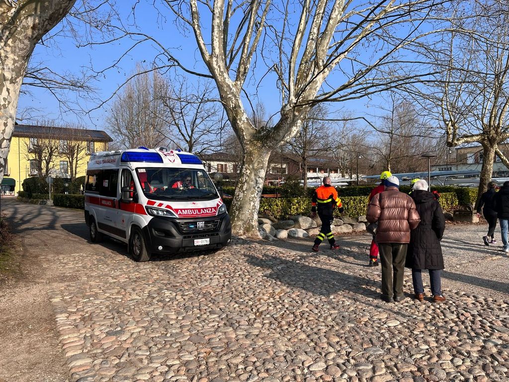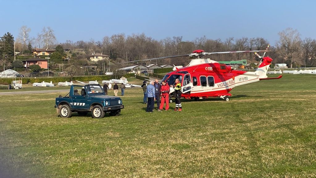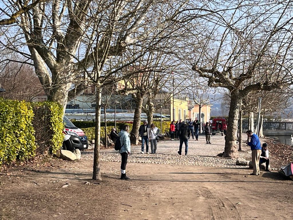 I soccorsi in azione alla Canottieri Varese per soccorrere la persona precipitata nel lago con un aliante