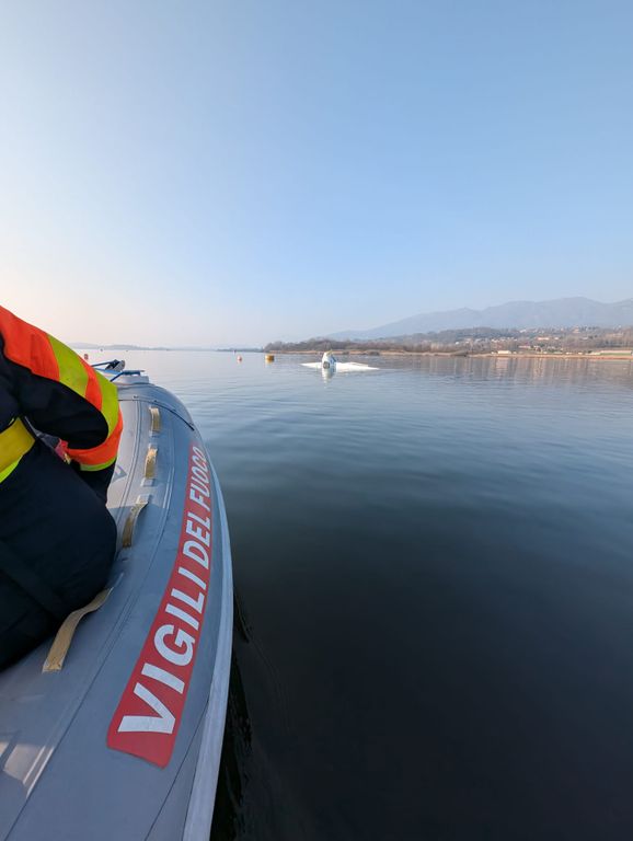 Aliante finisce nelle acque del lago alla Schiranna, grave un uomo. Il primo soccorso dei canottieri: «Lo tenevamo a galla, lui chiedeva di lasciarlo andare»