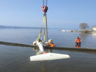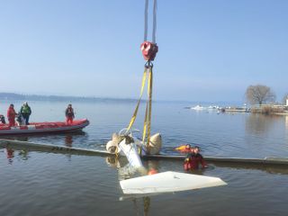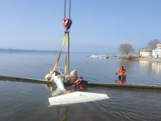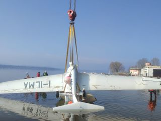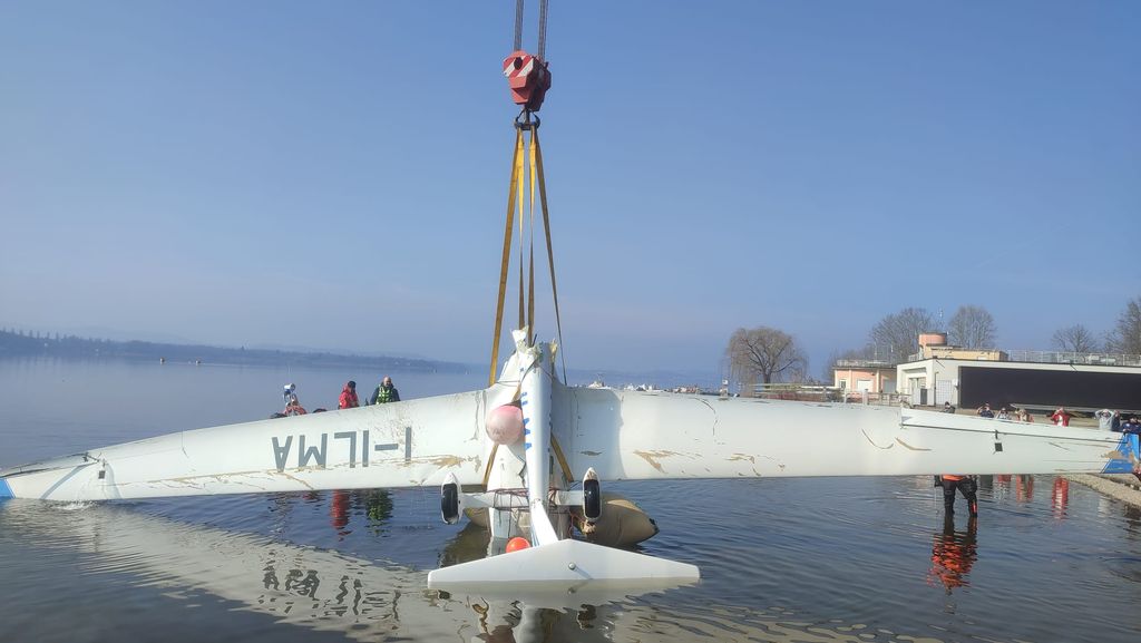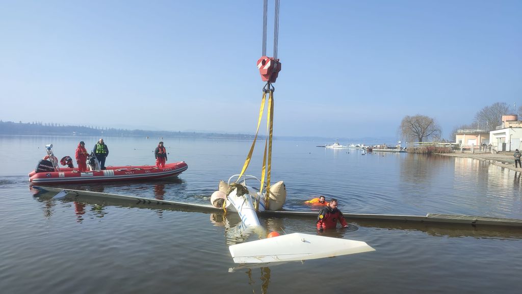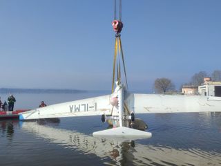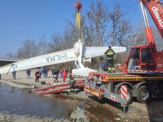 FOTO. Recuperato il relitto dell'aliante precipitato ieri alla Schiranna