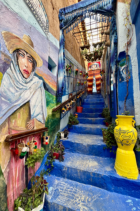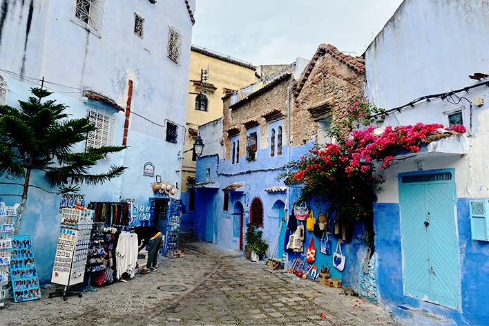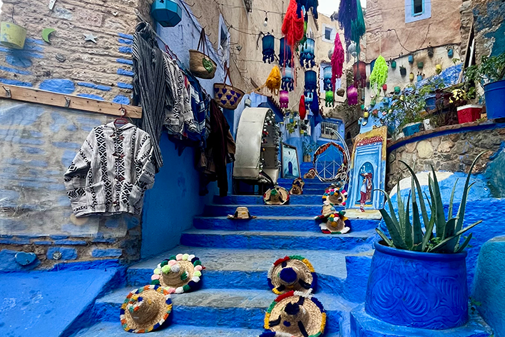 Siamo arrivati a Chefchaouen nel tardo pomeriggio, con il cielo punteggiato di nuvole che si rincorrevano sopra le montagne del Rif. La città è apparsa in una luce soffusa, con le sue piccole case che sembravano quasi sospese nello spazio. Dall’alto, la Moschea “Spagnola" dominava il panorama, avvolta da una leggera foschia; non siamo saliti fino alla sua terrazza panoramica, ma l’abbiamo ammirata dal basso, lasciandoci incantare dalla sua presenza “protettiva”. La sera abbiamo passeggiato tra botteghe, vicoli stretti e fontane decorate. Il mattino successivo, il sole splendeva alto e finalmente abbiamo visto Chefchaouen in tutto il suo splendore. I muri dipinti erano luminosi, le stradine animate dalla gente del posto e i suq erano un’esplosione di colori e profumi. Nel cuore della Medina, l’arabo e il francese si intrecciavano spesso con l’andaluso. Chefchaouen, mi è parsa come un ponte tra più culture; la sua natura marocchina, arricchita da alcune tradizioni spagnole e una forte presenza ebraica, mi ha sbalordito. Una “Città Santa”, per tutte e tre le religioni monoteiste!