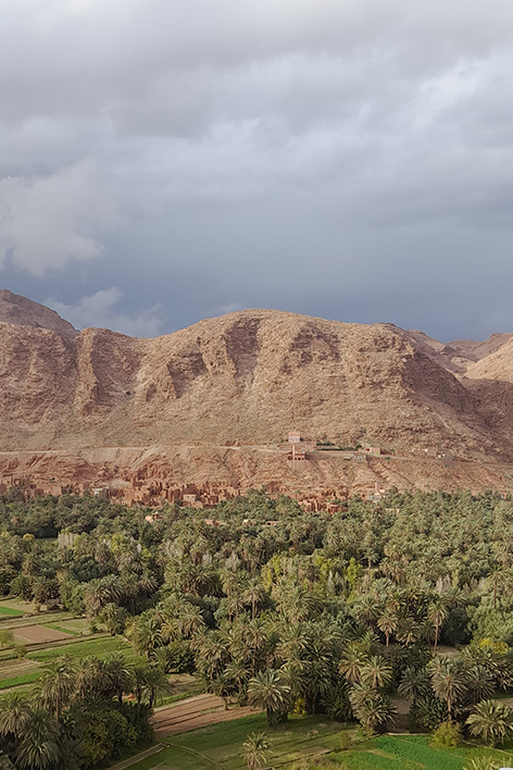 Lasciata la "Città Imperiale” di Fes, abbiamo fatto una sosta in un luogo inaspettato e surreale: Ifrane, un villaggio alpino nel cuore del Marocco. Situata a 1.700 metri di altitudine, questa cittadina mi è sembrata molto simile alla Svizzera, con chalet in legno, strade ordinate e giardini rigogliosi. Qui abbiamo visto la famosa statua del "Leone di Pietra", simbolo del posto, e passeggiato tra le sue strade silenziose in compagnia di un’aria fresca di montagna. La prossima tappa, è stata la Foresta dei Cedri: una passeggiata a piedi e a cavallo tra alberi secolari e animali inaspettati. In un bosco fitto, dove il profumo della resina era il vero protagonista, ad un certo punto abbiamo avvistato un gruppo di scimmie di Barberia; un’altra incredibile sorpresa, che ci ha riservato questo Paese! Prima di ripartire ci siamo fermati, in una radura, godendoci la pace e il silenzio assoluto del luogo. Dopo ore di viaggio attraverso le montagne del Medio Atlante, abbiamo lasciato l’aria di montagna dei “cedri” a beneficio di luoghi sempre più caldi. La strada si è fatta tortuosa, fino a quando, all’improvviso, si è aperta davanti a noi la spettacolare Valle dello Ziz. Abbiamo fatto una sosta in un punto panoramico e, affacciandoci, abbiamo visto palme estendersi tra le gole scavate dal fiume. Il contrasto, tra il verde brillante delle oasi e il rosso acceso delle rocce è stato mozzafiato.