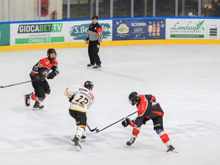 Forse è solo il vecchio cuore giallonero, impossibile da estirpare, a battere il Caldaro all'overtime e a proiettarsi sull'Alleghe nei playoff dopo una partita a tratti bellissima, non solo perché giocata in scioltezza dalle due grandi rivali (ci sono penalità, pali, occasioni, contestazioni, gol irregolari). Decisiva la vecchia guarda, a partire da Piroso e capitan Vanetti, continuando con Erik Mazzacane, Franchini a cui è mancato solo il gol e tutti gli altri, una prima linea apparsa ben assortita (Piroso-Marcello Borghi-Perino con quest'ultimo assolutamente decisivo sugli assist di Pizzo e, poi, del capitano nell'overtime), così come seconda e terza - i gialloneri avevano gli uomini contati - e gli interventi di Ohandzhanian, strepitoso a tu per tu con l'asso Siiki nella parata della serata, e non solo in quell'occasione, seppur imperfetto sulla rete del 3-2 ospite con il disco alzato in pallonetto e poi scivolato in gabbia.