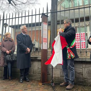 Scoperto il totem dedicato a don Alberto Dell'Orto davanti al "suo" Teatro