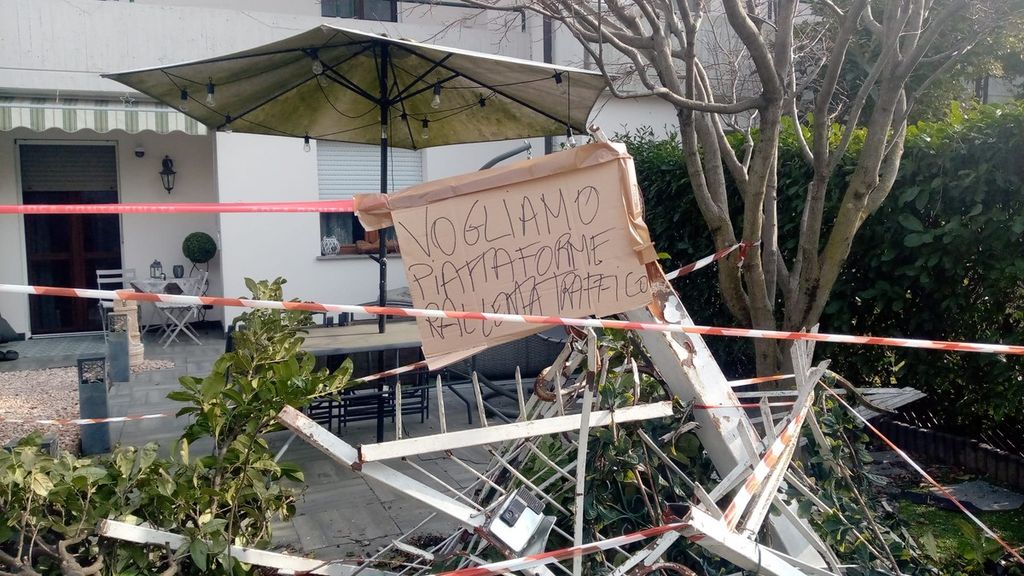 Un segno di protesta dopo il grande spavento provocato dall'incidente. La cancellata, inoltre, dopo quasi un mese, è ancora riversata sui due giardinetti.