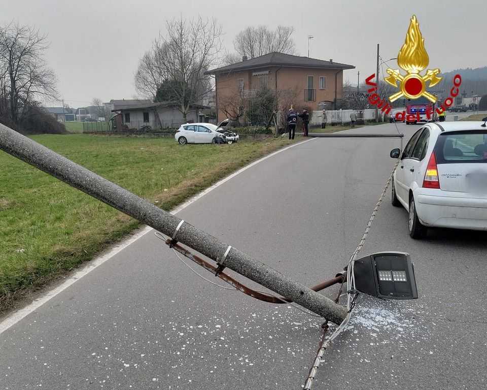 Incidente con "domino" di pali dell'illuminazione a Casale Litta: due automobilisti feriti
