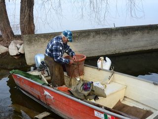 Con il motore al minimo, il Negus o Nègher per via della carnagione scura e di capelli e baffi un tempo nerissimi, si appresta a ritornare a riva dopo aver riposto le reti in barca. Adesso arriva la parte più noiosa, togliere dalle maglie i gardon, per poi filettarli nel pomeriggio e preparare il carpione.