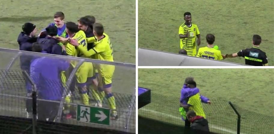 La notte di Bubacare Silla, a destra abbracciato da mister Grieco dopo la sostituzione e la tripletta
