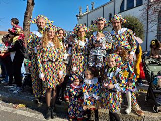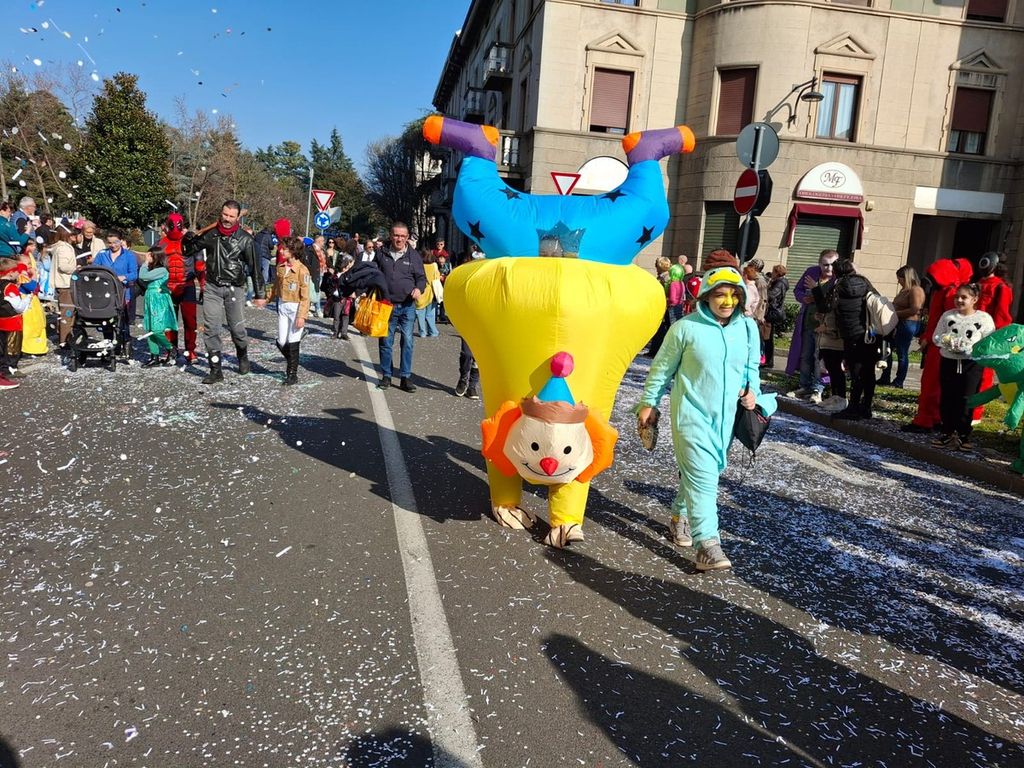 Esplode l'allegria in centro nel percorso da via Zappellini, tanti hanno voluto partecipare all'atmosfera festosa dei carri. Quante maschere, quanti bambini, quante famiglie in una giornata di sole e felicità. Tutti vogliono vedere i carri e accoglierli a modo proprio: fantastici i nuclei familiari o i gruppi di amici agghindati alla stessa maniera. Un colpo d'occhio da non perdere.