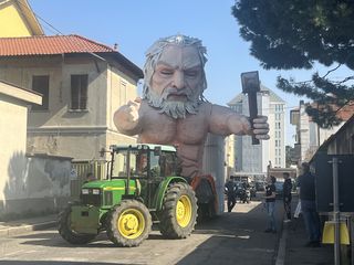Immenso il carro con Efesto (o Vulcano a seconda della versione greca o romana che si preferisce, comunque colui che batte il ferro, da vero lavoratore) e le colonne, accanto al Tarlisu e alla Bumbasina che naturalmente guidano il corteo (nel ricordo del fondatore della Sinaghina Giovanni Sacconago). Ed ecco un terzo carro, sempre ispirato all'antichità. Si dirigono verso il centro, scortati dalla polizia locale di Busto Arsizio: in via Zappellini convergono anche gli altri carri.