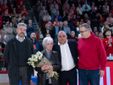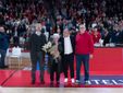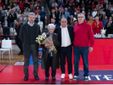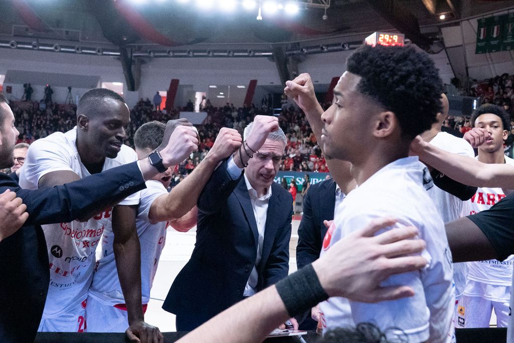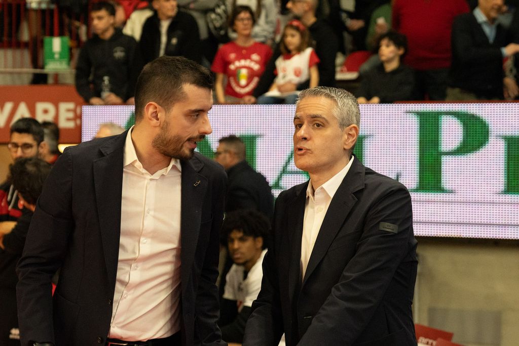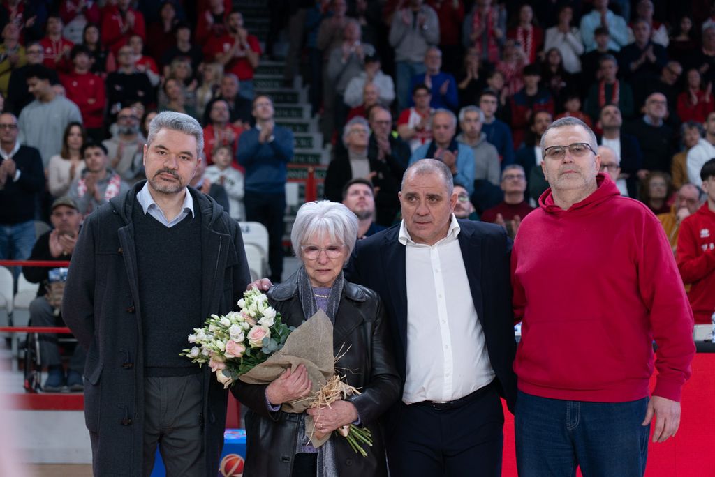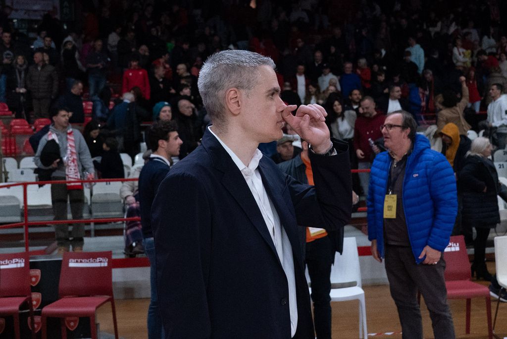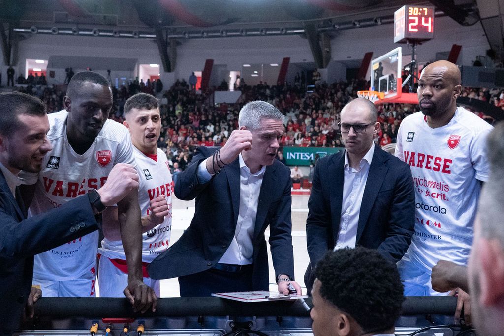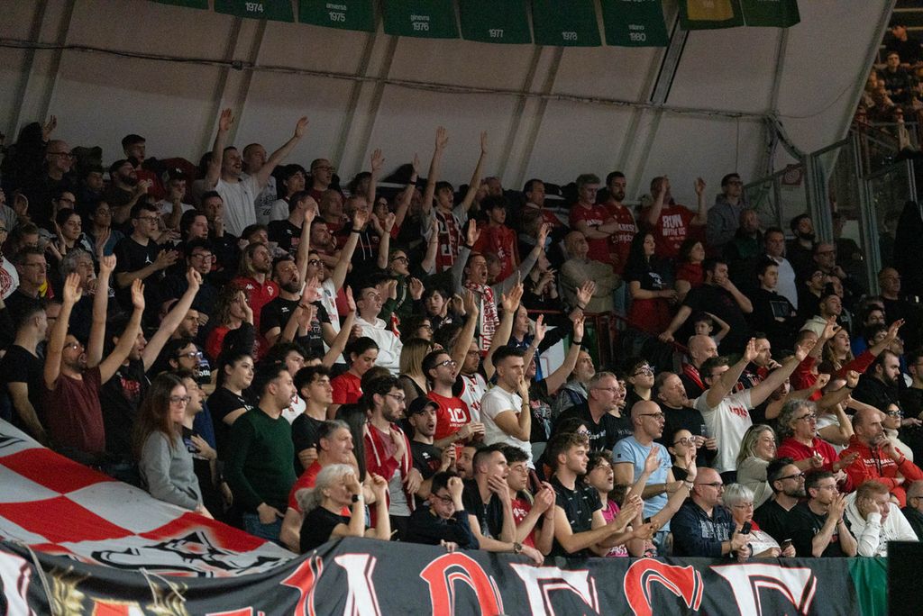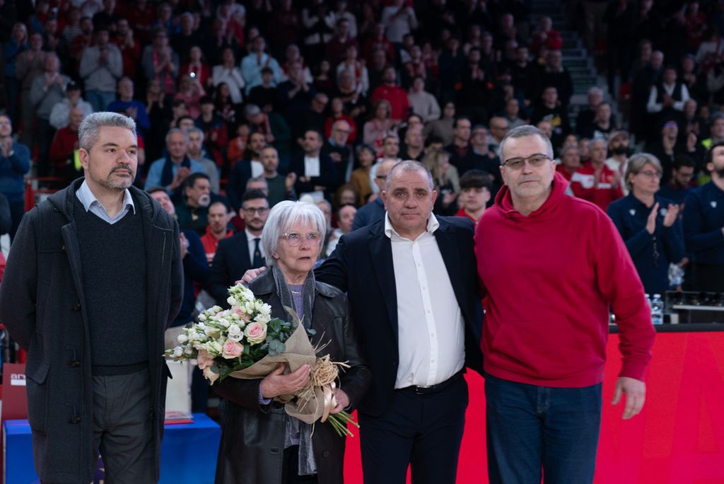 Prima del match, un lungo e sentito omaggio quello che il pubblico di Masnago ha riservato a Sandro Galleani, storico fisioterapista leggenda della società biancorossa scomparso, lo scorso 8 marzo. La vedova Egidia ha ricevuto un mazzo di fiori, posato poi sul posto da dove il marito era solito seguire le partite.
