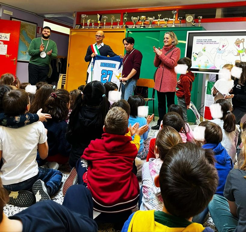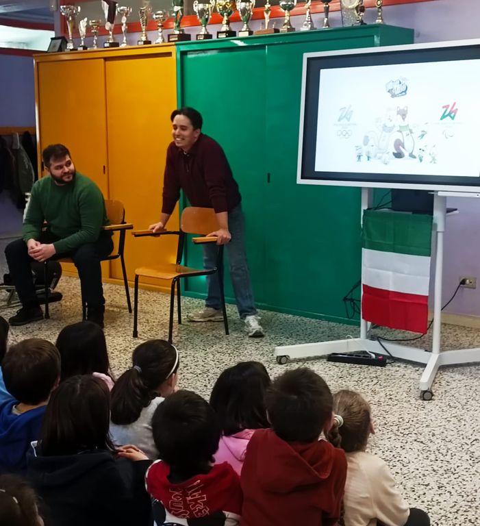 Assieme ad Andreoni era presente anche Gabriele Lanza, suo compagno di Nazionale. I due atleti hanno presentato ai bambini i simboli Olimpici e Paralimpici, l'attrezzatura da loro utilizzata per giocare a para ice hockey e alcune discipline sportive invernali.