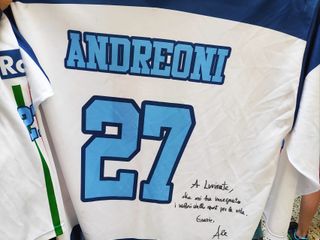 Andreoni ha poi regalato una sua maglia da gioco della Nazionale, su cui ha scritto una dedica: A Luvinate, che mi ha insegnato i valori dello sport per la vita. Grazie, Ale. La stessa maglia è stata donata alla scuola, all’interno della quale verrà presto esposta.