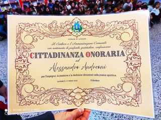 La pergamena che attesta la cittadinanza onoraria è stata consegnata ieri ad Andreoni da Alessandro Boriani, sindaco di Luvinate. Il tutto si è celebrato presso la scuola primaria Celestina Pedotti, proprio quella frequentata da Andreoni da bambino. Ad assistere al momento i piccoli alunni da cui è partita la proposta di nominare cittadino onorario l’atleta.