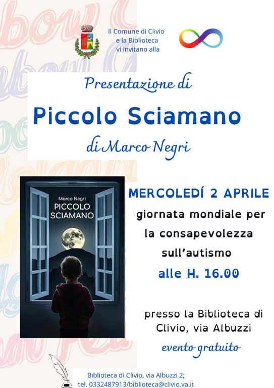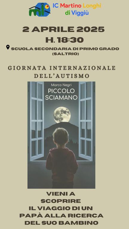 In occasione della Giornata Mondiale per la Consapevolezza sull'Autismo, il 2 aprile 2025, si terrà in Valceresio una doppia presentazione del libro Piccolo sciamano di Marco Negri, che racconta la storia di un padre alle prese con la realtà di un figlio autistico. Un'opportunità unica per conoscere meglio questa neurodivergenza e per entrare in contatto con l'esperienza diretta di vita di chi la vive quotidianamente.