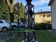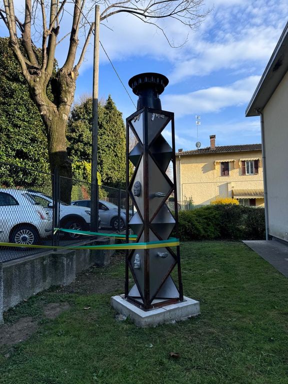 Il manufatto è stato realizzato utilizzando un traliccio che in origine si trovava nell’area della ex-Polveriera e che, un tempo, sorreggeva una sirena. Ogni giorno, alle ore 16, il suono della sirena avvisava i lavoratori e gli abitanti del luogo dell’imminente esplosione delle polveri residue della lavorazione degli innesti. In occasione dell’inaugurazione, la sirena è stata fatta risuonare nuovamente, rievocando la memoria storica del sito.