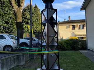 Il manufatto è stato realizzato utilizzando un traliccio che in origine si trovava nell’area della ex-Polveriera e che, un tempo, sorreggeva una sirena. Ogni giorno, alle ore 16, il suono della sirena avvisava i lavoratori e gli abitanti del luogo dell’imminente esplosione delle polveri residue della lavorazione degli innesti. In occasione dell’inaugurazione, la sirena è stata fatta risuonare nuovamente, rievocando la memoria storica del sito.